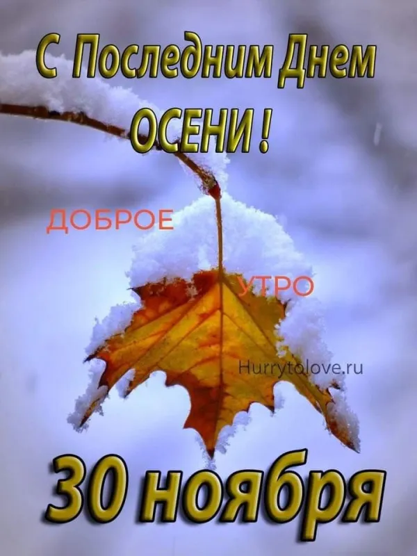 Сегодня последний день ноября, а значит мы прощаемся с осенью и завтра будем встречать зиму. Давайте вспомним все хорошее, а все плохое оставим в последнем осеннем дне. Очень хочется надеятся, что следующие зимние месяцы принесут нам мир, благополучие и душевное спокойствие. Скачайте эти красивые картинки "С поледним днем осени" и отправьте своим близким или просто знакомым.