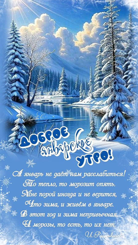 Предалагем вам новую коллекцию зимних картинок "Доброе утро" , которые доступны для бесплатного скачивания. Они будто впитывают в себя атмосферу зимней сказки: тихие сугробы за окном, лёгкий утренний мороз, теплые шарфики и то самое чувство, когда день начинается по-особенному тепло. Такие картинки помогут настроиться на хороший день, подарят улыбку и немного зимнего волшебства. Используйте их для постов в соцсетях или просто чтобы порадовать близкого человека приятным «зимним утром». Пусть каждый новый день начинается красиво!