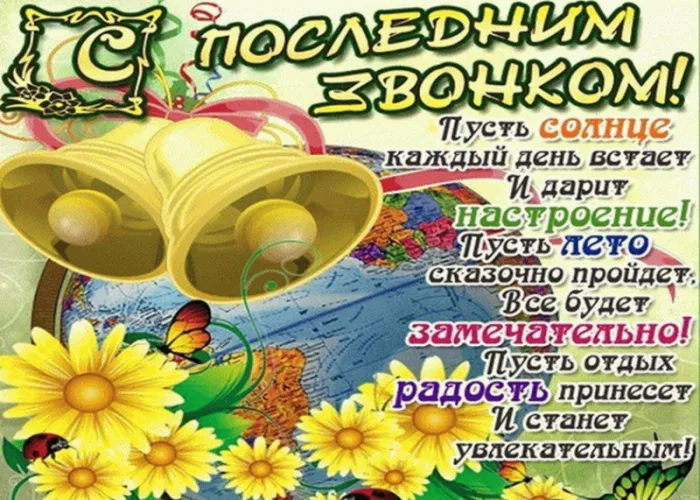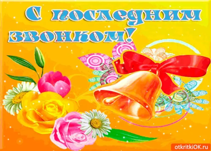 С последним звонком поздравьте всех школьников, для кого-то в этот он будет последним в прямом смысле этого слова! Впереди ребят ждут новые возможности, друзья и приключения. Пусть этот день ознаменуется новым стартом в будущем всех выпускников! Красивые открытки с последним звонком на нашем сайте!
