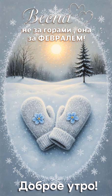 Скачайте бесплатно наши новые и красивые картинки Доброго утра февраля, которые мы собрали на нашем сайте. Февраль - это последний месяц зимы, который предвещает нам скорую весну. Солнце уже греет сильнее, растапливая сосульки, а синицы начинают петь свои весенние песни. Но зима в феврале еще сопротивляется, поэтому могут быть и вьюги и морозы, но это нас не пугает - ведь скоро долгожданная весна и март. Ну, а мы предлагаем вам отправить своим друзьям картинки с пожеланием Доброго февральского утра и с последним днем зимы.