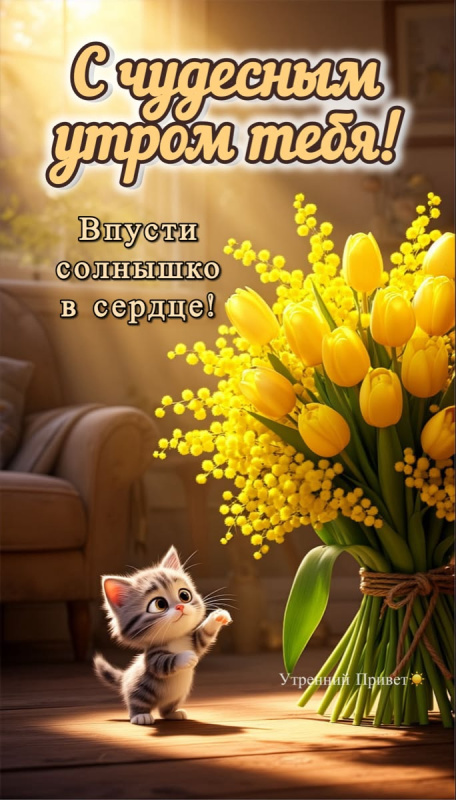 Желаю тебе доброго утра и ясного дня, несмотря на непредсказуемость погоды за окном! Пусть светятся радостью твои глаза и позитивный настрой накатывает своими яркими волнами. Да будет все прекрасно и удивительно сегодня!