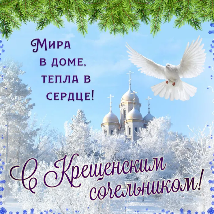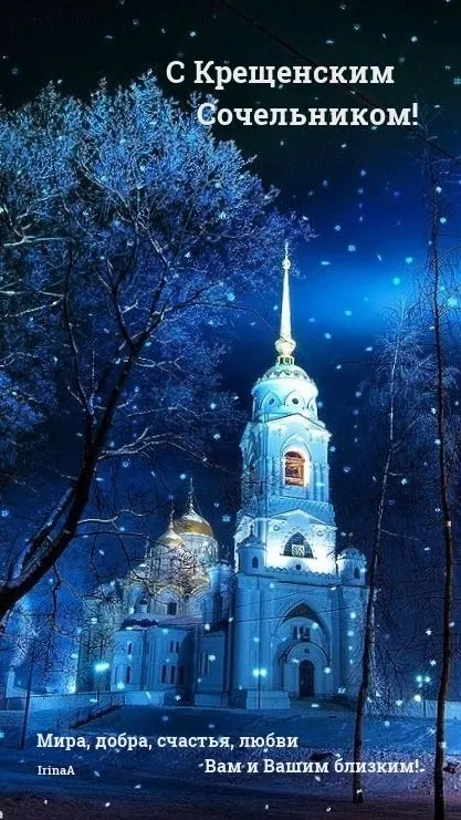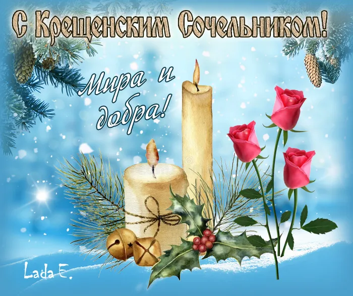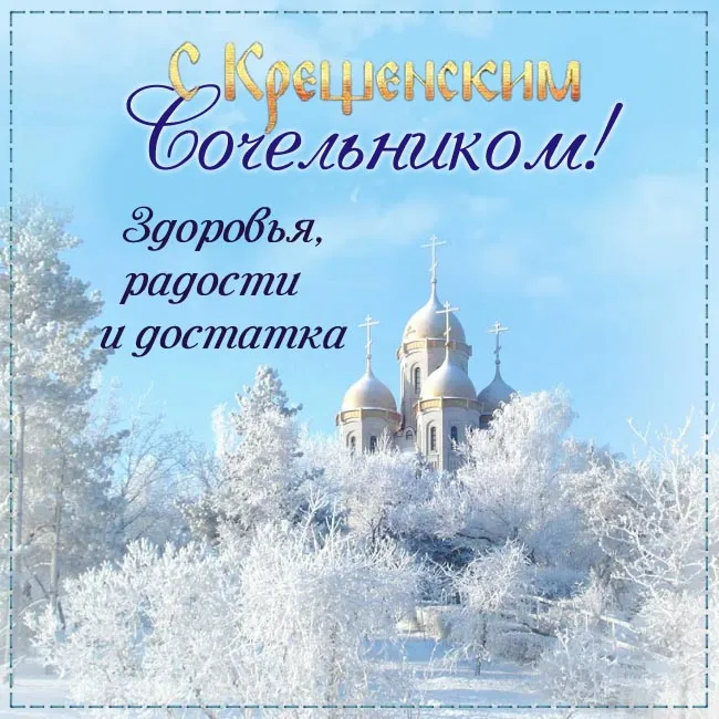 Дорогие друзья и наши гости! Предлагаем вам картинки с поздравлениями на Крещенский сочельник. Мы постарались собрать здесь самые красивые, а также новые авторские картинки и открыки для того, чтобы вы могли скачать и отправить своим друзьям и родным поздравление с Сочельником и с Наступающим Крещением в картинках. Крещенский Сочельник или Навечерие Крещения Господне наступает по церковному календарю с 17 на 18 января.